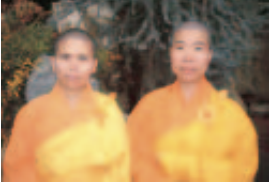 有一天西雅图Mark Lin师兄与泰国魏铭琦师兄到佛陀恩师处要求参加坛城工作,我们恩师三世多杰羌佛对他们开示说:「坛场的工作,你们没办法做的,无论是道量、还是身体都还不行。」,师兄们恭敬地说:「她们几个出家人这么瘦小都行,难道我们不行吗?」三世多杰羌佛开示说:「你们不能跟她们比,她们没问题的,她们对三毒之力已有降伏力,这个坛场的威力太强大,有一种无法抵御的气体,你们两位凡胎之体是没法招架的。」结果Mark师兄与魏师兄去买了整套的防备用具,从头武装到脚,然后在佛陀老人家面前展示并且说:「我们现在不怕了,毒瓦斯都无奈何我们,已经全副武装了!」佛陀老人家听了笑笑说:「真正不怕的是我这几个小徒弟,你们不行的,面人一个,禁不起风吹浪打,更何况坛场威力,等两天就会看到两个大头、大耳、眯缝眼将军!」两位师兄当时对我们说:「怎么可能嘛,你们跟了这么久,随时进坛场,一点事都没有,难道我们就这么差劲吗?」第二天,我们十几个人一起进了坛场,果然在坛场服务后,两位师兄的脸开始变形,耳朵变大,嘴巴也挪位,整个五官都扭曲了,不到三天的时间,头、脸整整大了三分之一,眼睛眯成了一条缝,几乎看不到路,就连站在眼前的是谁,都快无法辨认,整个身体五官全变形了,这一事实与三世多杰羌佛所言完全相同,两个大头将军出现了,魏师兄说:「这一次真的是革面洗心了!」,而我们这些在佛陀恩师身边修行的人,却完全平安无事,两位师兄还戴了防毒面具,全副武装,而我们用的却是最简陋的装作而已,但是五阴浮云、毒气魔障在我们面前一点也没有作用,我们在佛陀恩师身边修炼确实与一般人不同,这是我们在现场参与、亲身经历「什么叫做三毒水泡虚出没」的事实。
