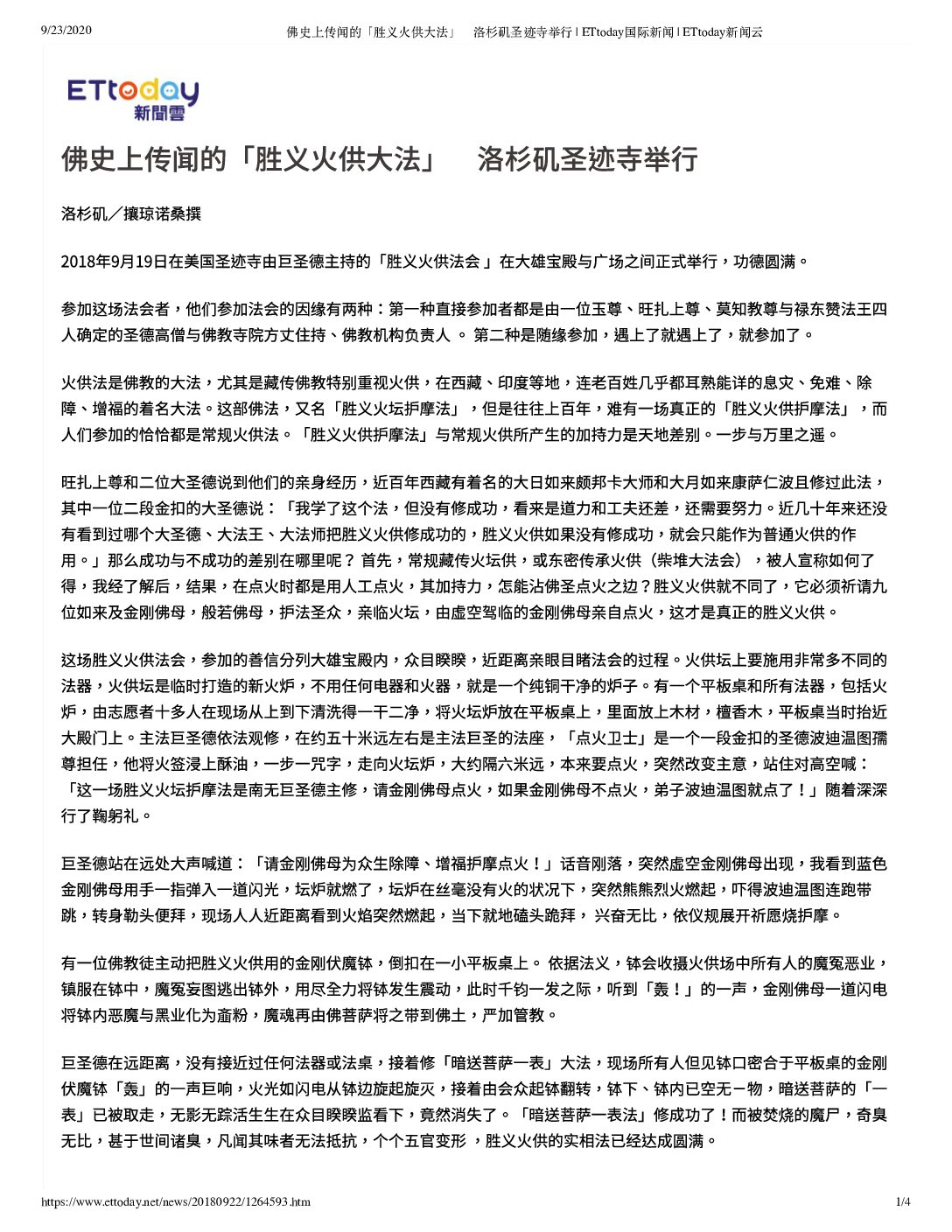 佛史上传闻的「胜义火供大法」 洛杉矶圣迹寺举行 洛杉矶...